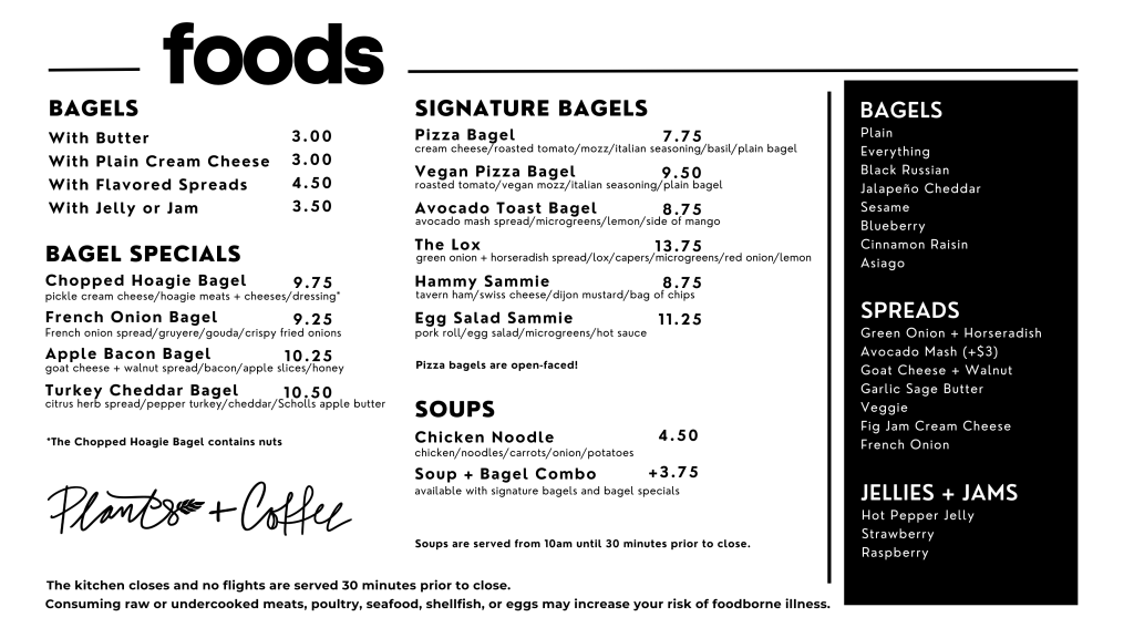 We are a family-owned coffee shop with roots in the houseplant world and a love for yummy lattes and delicious locally baked bagels. We pride ourselves in our unique food + drinks creations and relaxing café dining experience.